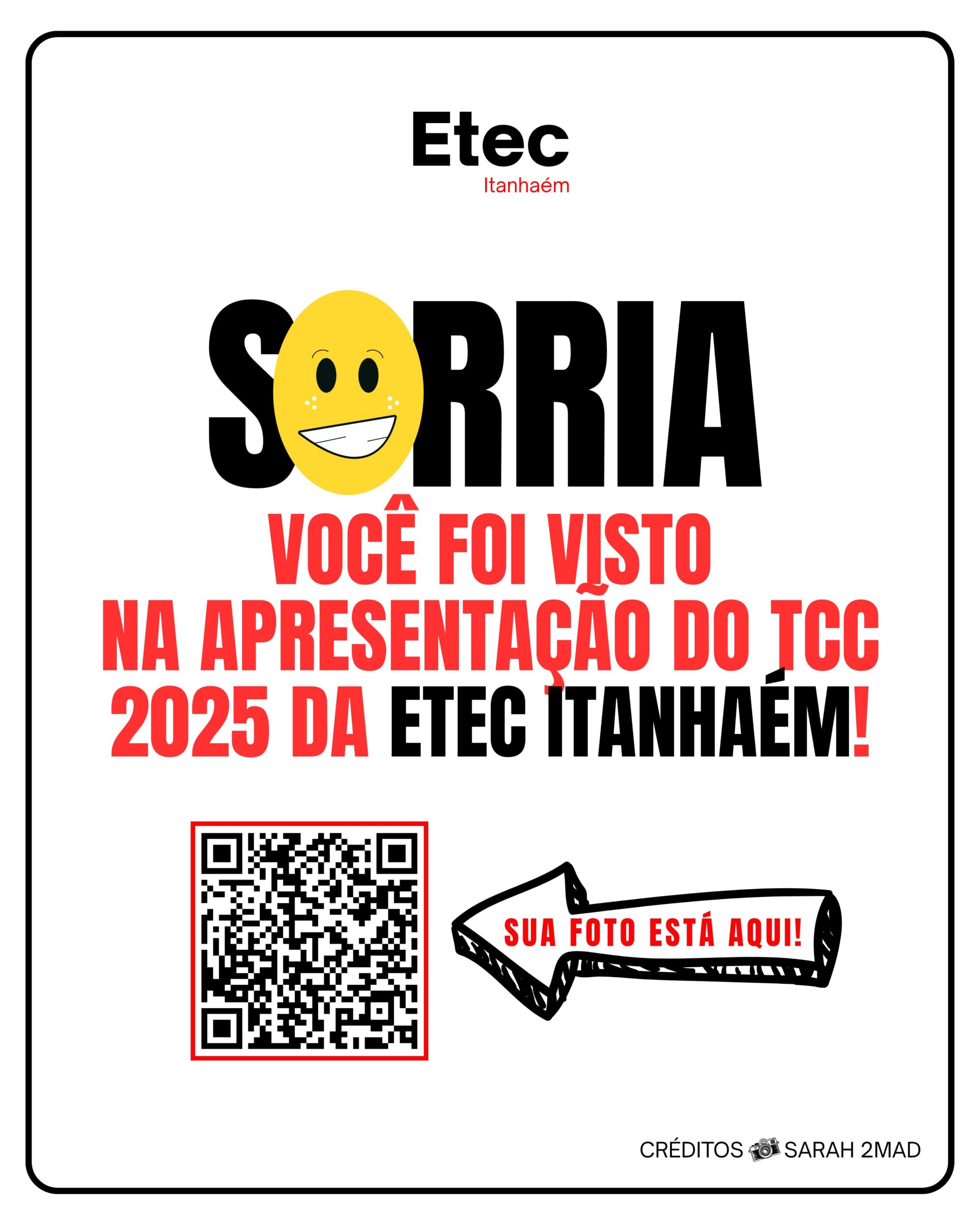 A 27a Mostra do TCC 2025, dos alunos 3ADM, 3DSI e 3FAR – da ETEC de Itanhaém, foi um sucesso!Confira no QR CODE do banner anexado, as fotos feitas 📸 pela nossa aluna Sarah (2ADM)