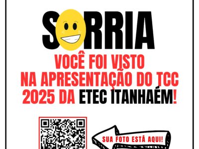 A 27a Mostra do TCC 2025, dos alunos 3ADM, 3DSI e 3FAR – da ETEC de Itanhaém, foi um sucesso!Confira no QR CODE do banner anexado, as fotos feitas 📸 pela nossa aluna Sarah (2ADM)