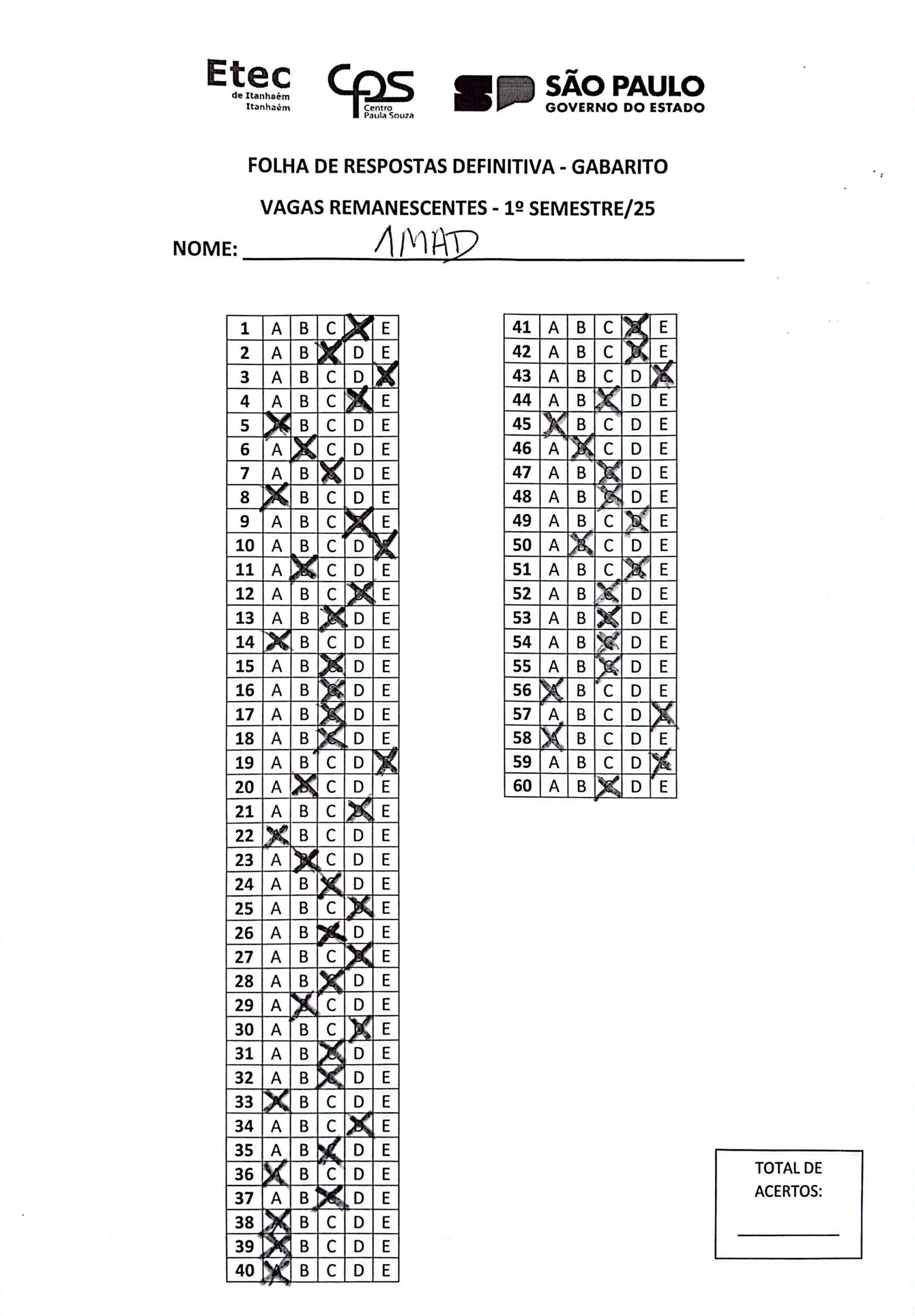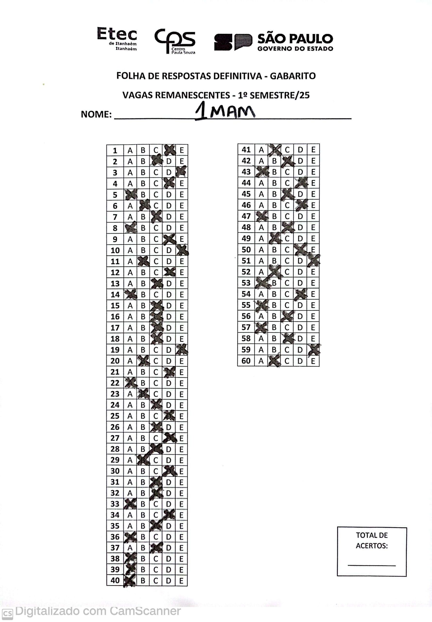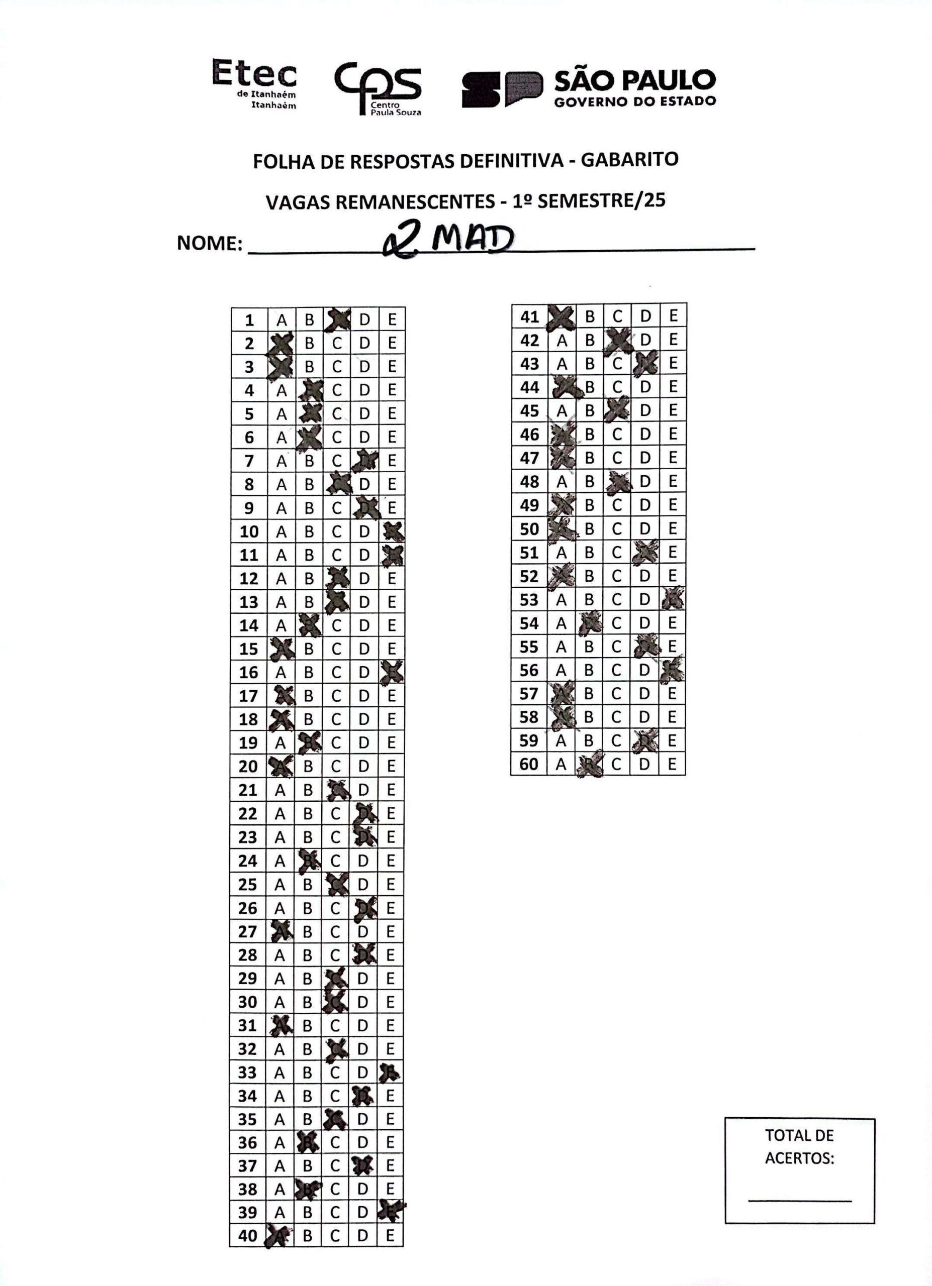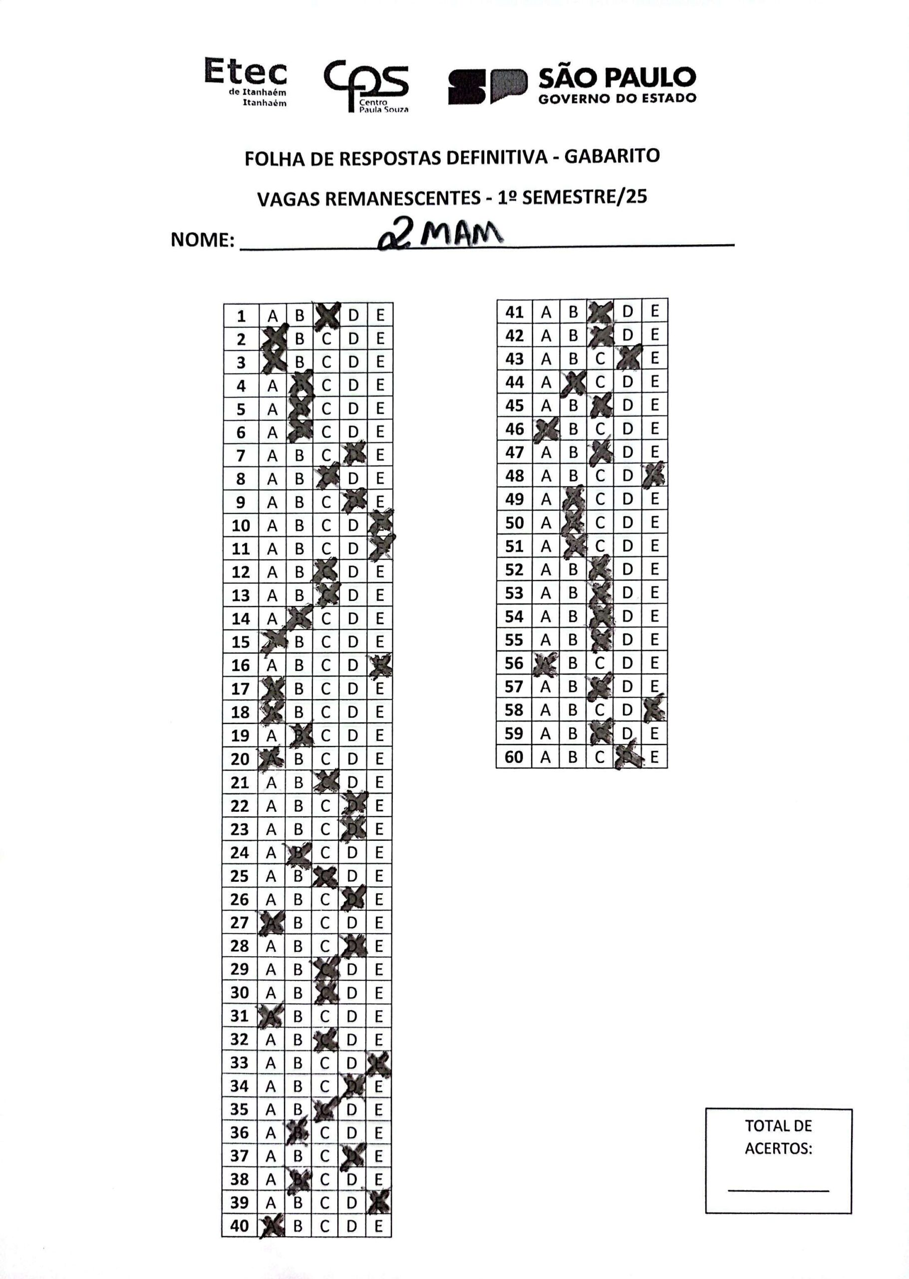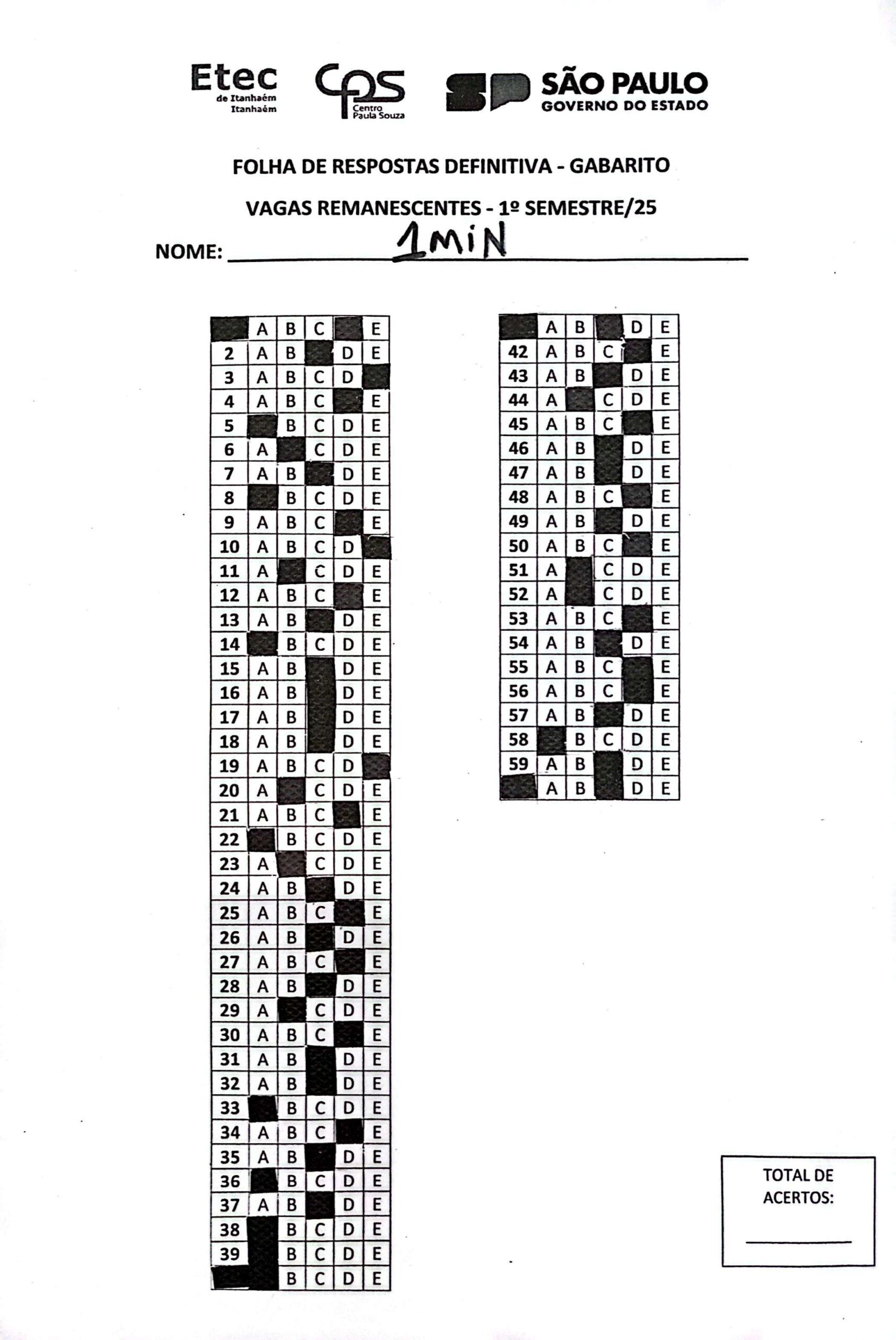 Confira a classificação final para as vagas remanescentes dos cursos ofertados pela Etec de Itanhaém para o 02º semestre de 2025.